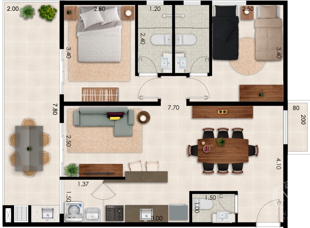Com uma distribuição inteligente, este imóvel conta com 2 dormitórios, sendo 2 suites, proporcionando privacidade e praticidade para toda a família.